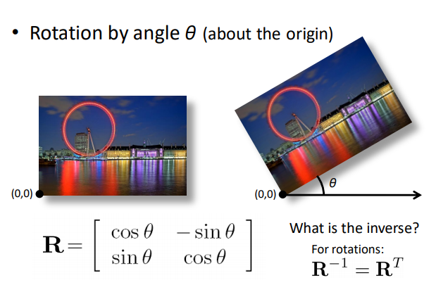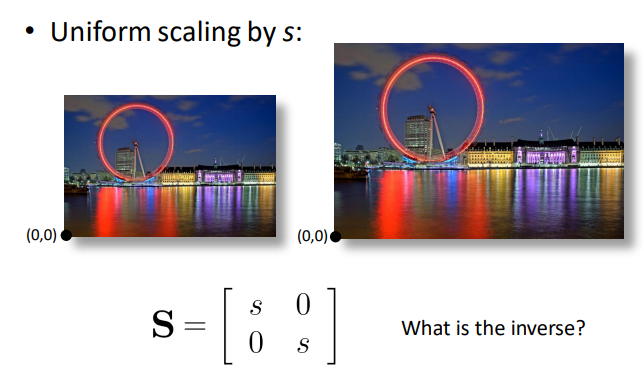 흔한 linear transform의 예는 다음과 같은 scale 변화와 회전등을 뽑을 수 있습니다.