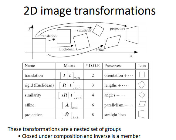 아래의 표를 보면서 정리하구 어떤 transformation이 어떤 특징이 있는지 다시 생각해보시면 도움이 많이 될 거 같습니다.