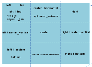 gravity : 해당 속성을 지닌 view 내부 컨턴츠(자식 view 포함)의 위치를 지정하는 속성