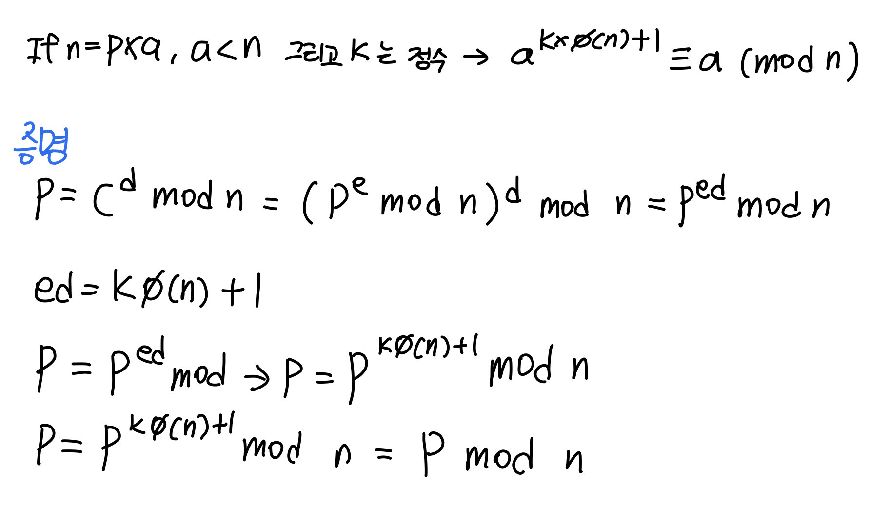 gcd(∅(n), e ) = 1입니다. 생각해보면 당연한게 서로소가 아니라면 ed mod ∅(n)=0 이 되버릴 겁니다.